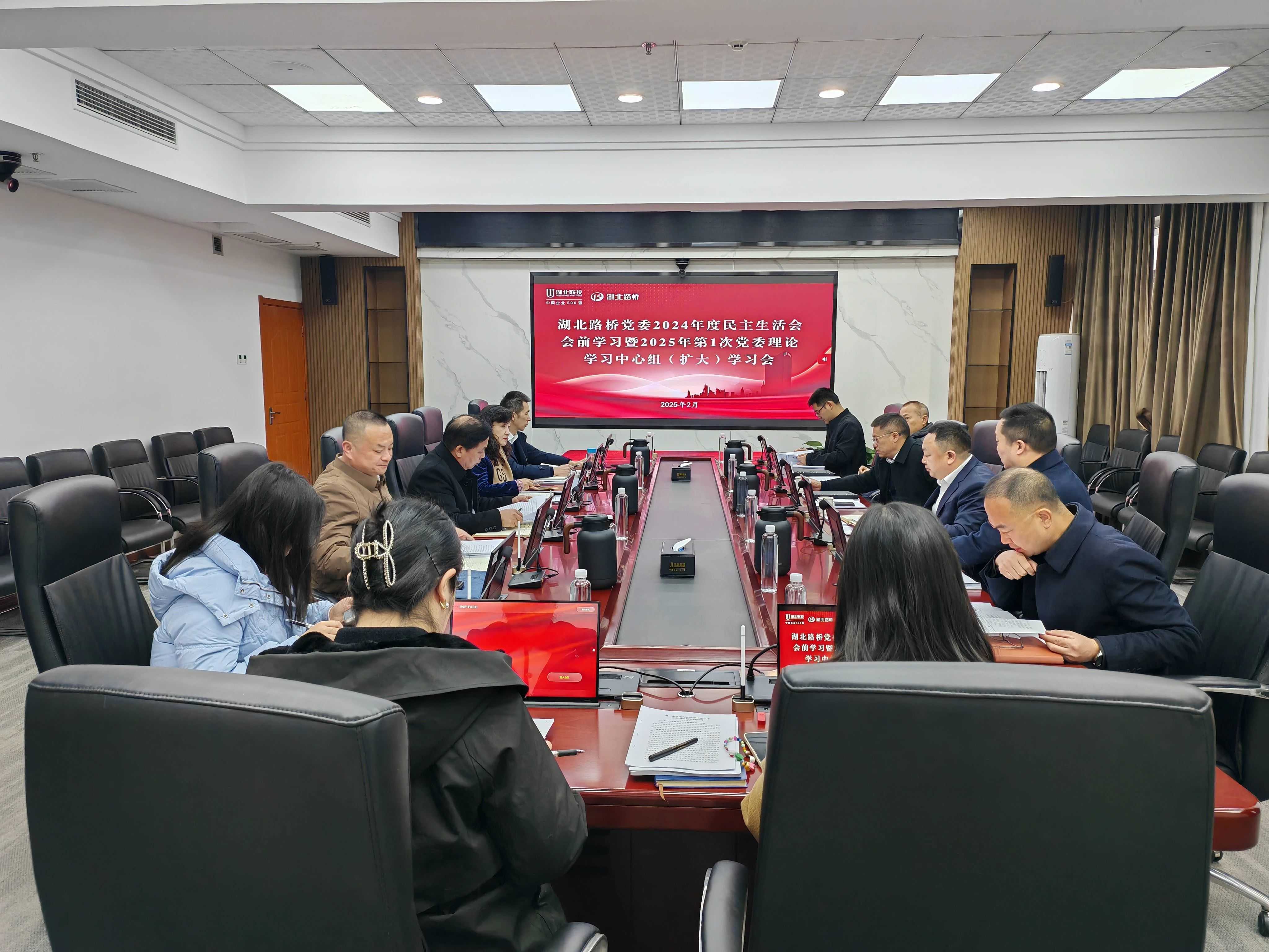2月10日,湖北路橋黨委召開2024年度民主生活會會前學習暨2025年第1次黨委理論學習中心組(擴大)學習會,傳達學習習近平總書記關(guān)于全面加強黨的紀律建設、全面深化改革等內(nèi)容,增強以黨的自我革命引領(lǐng)公司改革發(fā)展的自覺性和堅定性,打牢開好民主生活會的思想基礎。公司黨委書記、董事長潘新平主持會議并講話,黨委班子成員結(jié)合學習體會和工作實際作交流發(fā)言。