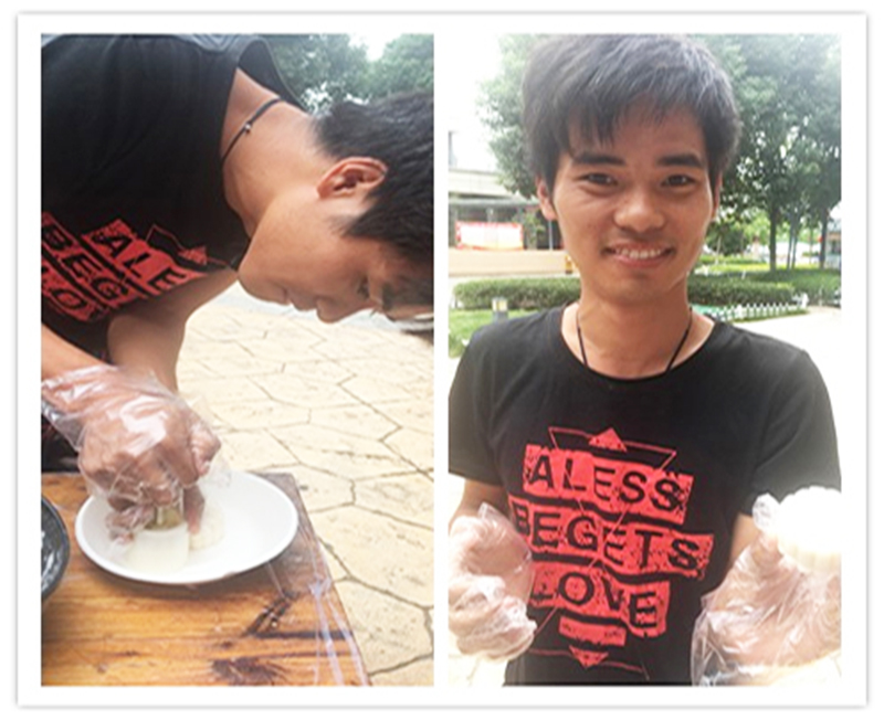 品嘗月餅也是中秋節(jié)的習俗之一,如果能品嘗自己親手制作的月餅,這個中秋節(jié)肯定更加難忘?;顒拥诙椌褪侵谱鞅ぴ嘛灒蠹乙贿呑约簞邮趾捅?、包餡、壓花定型,一邊相互交流著關于中秋和月餅的故事??此坪唵蔚闹谱鬟^程,要做出漂亮的月餅也讓大家費了不少心思。有些止不住饞的小伙伴,還沒等做完就迫不及待的嘗鮮了,也有些舍不得吃的,說要帶回家與家人分享。