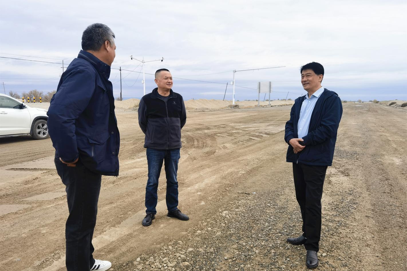 圖:張保江(右一)調(diào)研雙河沙山子項(xiàng)目